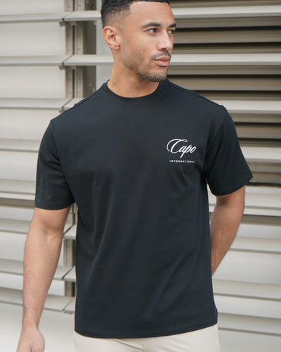 The Capo International T-Shirt offers a relaxed fit with standout style, featuring our signature branding on the front left chest and bold artwork across the back. Crafted with premium print.