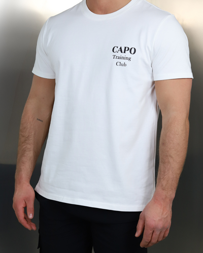 Capo TRAINING Club Print Tee is designed to be the perfect t-shirt for any outfit, wear it alone or underneath a jacket! Designed to give the premium look, aesthetic fitting and produced with stretch materials giving the t-shirt premium feel and comfortable fitting!